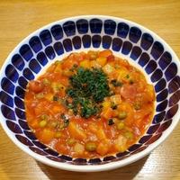 玉ねぎ、人参、ジャガイモなどのたっぷりの野菜とお餅が入った、和風アレンジのミネストローネです。にんにくの香りと野菜の甘みが溶け込んだトマトスープに、もちもちのお餅が絶妙な食感を添えています。お餅は柔らかいうちに食べるのがポイントです。チーズを加えたり、セロリを入れてヘルシーに楽しんだり、アレンジ自在。酸味と旨みのバランスが良く、食欲がない時でも美味しく召し上がれます。