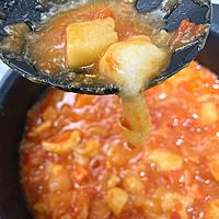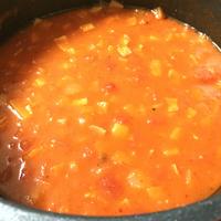 - 4 トマトソース缶とコンソメ、水を加えて、中火でフタをして15分煮込みます。