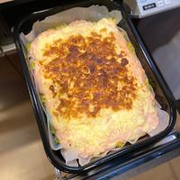 じゃがいもを加える場合は、ごはん、じゃがいも、たらこソース、ピザ用チーズの順番でお作りいただけますよ。じゃがいもはお好みの大きさに切り、あらかじめ加熱してからのせてくださいね。ご参考になれば幸いです。おいしく仕上がりますように。