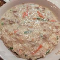 生姜を加えたのと、白だしの代わりに麺つゆ少々を使いました。クリーミーで美味しかったです。食べ途中で豆板醤を加えて味に変化をつけました。