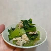 チンゲンサイは茹でて、鶏ハムを細かく切って入れてみました!