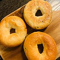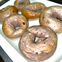 初めて作りました。美味しい!ベーグル屋さんで買ったのと変わりないです(๑>◡<๑)クランベリーの代わりに有機レーズンを使用。クリームチーズと蜂蜜を挟んで食べました。子供達も大喜び。