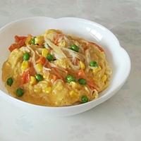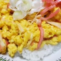 とっても簡単な丼のご紹介です。和風顆粒だしでコクをだし、マヨネーズを加えることでふわふわ卵に仕上がります。温かいごはんにのせたピザ用チーズと卵、カニカマとの相性は抜群で、お箸がすすみます。ぜひお試しくださいね。