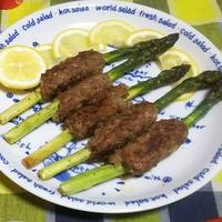 シシカバブーの串をアスパラガスで代用して作りました。スパイシーな味付けが特徴的なレシピです。お肉の部分とアスパラガスを一緒に食べられるのでオススメです!手で持って食べられるのでパーティーなどにもオススメです!