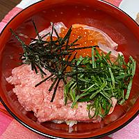 - 4 器に3をよそいます。マグロ、イクラ、1、2をのせます。