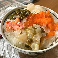 塩加減は、お好みで調整してくださいね。海鮮は、他の魚のお刺身に代用してもを使っても美味しく頂けます。