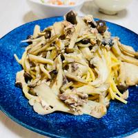 きのこは「しめじ」「エリンギ」「舞茸」、明日も休みだったのでニンニク増量
