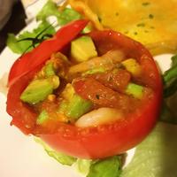 トマトを丸ごと使った贅沢なサラダです! 中身は好きな野菜やササミ、サーモンなどを入れて、彩り豊かに目にも楽しい一品です。 パーティーなどに、ちょっぴり贅沢にそしておしゃれに♪ 食卓を彩ってみてはいかがでしょうか!
