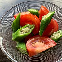 トマト大きめ2個、オクラ10本くらいで作りました。薄味を心掛けているので、調味料はそのままでも充分美味しかったです。サッパリ食べられて暑い時期にピッタリですね✨