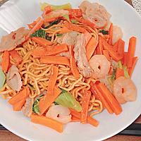 お正月の大きいエビが余ったので作りました! ソース焼きそばよりは食べてるうちに飽きることがあるけど、オイスターソースの香りで、あっさり食べられます。 具材で彩りつけて、見た目豪華になります