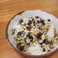 - 5 ナスがしんなりとしてきたら、3を入れ、中火で汁気がなくなるまで炒めます。