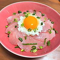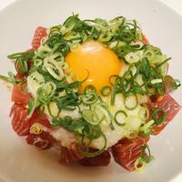 長芋のサラサラとした食感が特徴的な手軽に作れる一品です。お刺身用マグロを適当にカットし、白だしで味付けした長芋をのせれば完成。黄身のまろやかさが全体の味わいをまとめ、サッパリとした口当たりながら深い旨味が楽しめます。酢飯にすることで食べやすさがアップし、かいわれや海苔を添えれば彩りも良く、見た目も華やかな丼に仕上がります。