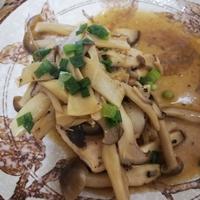 - 7 同じフライパンに有塩バターを入れ中火で熱し、2を入れて火が通ったら、残りのキノコソースの材料を入れて全体になじんだら火から下ろします。