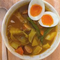 スープカレーはいかがでしょうか。難しいイメージがあるスープカレーですが、今回は電子レンジ調理で簡単に作るレシピです。具材をゴロッと大きめに切っているので、食べ応えのある一品ですよ。ぜひお試しくださいね。