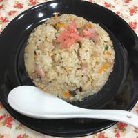 - 4 ごはん、(A)を入れて中火でパラパラになるまでよく炒め合わせます。