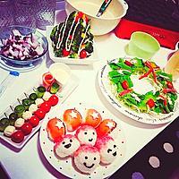 子ども用なのでお刺身用サーモンでワサビ無しで作りました。彩り考えスライスチーズで模様付けてます。出来れば半分くらいのサイズの方が食べやすいかなー。