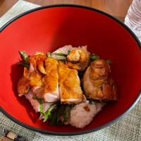 ジューシーな鶏もも肉を使用した照り焼きチキン丼は、和風テイストが新鮮です。こってりとした醤油だれにわさびの風味が爽やかに香り、さっぱりとした味わいが特徴。大葉や海苔を添えることで、より風味豊かに。作り方のポイントはわさびを後から加えることで、香りを楽しめます。タレは多めに作るのがおすすめで、ご飯との相性も抜群です。簡単に作れるのも魅力的です。