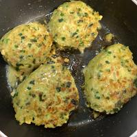 - 4 中火で熱したフライパンにごま油をひき、3を入れて中火で両面5分程、焼き色がつくまで焼きます。