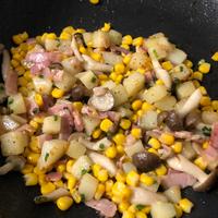 - 4 2とコーンを入れて、中火で火が通るまで炒めます。