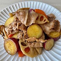 玉ねぎも入れてみました。とっても美味しかったです。さつまいもと豚肉の組み合わせが好きです。