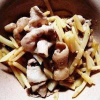 - 1 新じゃがいもは細切りにし、豚バラ肉は7cm幅に切ります。