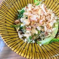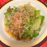 - 3 1を入れてしんなりしてきたら、めんつゆを入れてサッと炒めたらお皿に盛り、かつお節を乗せたら完成です。