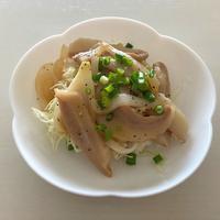 脂っこい気がしたので、お肉の下に千切りキャベツを敷きました