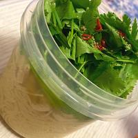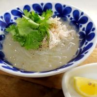 - 4 器にスープの調味料を混ぜ合わせ、3を入れた上に2をのせ、パクチーを添えて完成です。