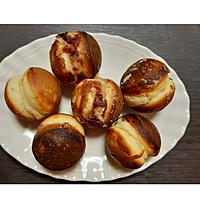 - 4 均等にこしあんを入れて焼き、表面がふつふつして膨らんできたら、2つの表面同士を重ねて1個にします。転がしながら全面を焼き、中まで火が通ったら取り出します。