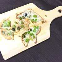 アラジンオーブントースター専用の💡フライパンでクッキングシート😃美味しかった🙌チーズ1枚、枝豆セブンイレブン冷凍を適量。皮取り小さいから大変ww