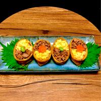 見た目の華やかさと手軽さが魅力のオープンいなり。市販のお稲荷さんの皮を使えば簡単に作れ、そぼろや炒り卵をのせるだけでご馳走に変身します。酢飯にごまを混ぜたり、タクアンを刻んで加えたり、梅と大葉を組み合わせたりと、アレンジも自在。お弁当やピクニック、行楽シーズンにぴったりの一品で、作る過程も楽しく、子供と一緒に調理するのもおすすめです。