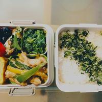 - 3 中火で熱したフライパンにごま油をひき、鷹の爪輪切り、2を炒め、色が変わってきたら1を入れます。
