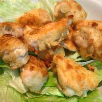 - 5 バットに薄力粉を入れ、4をまんべんなく付けます。