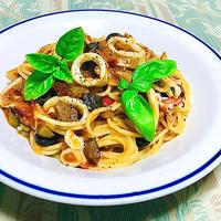 イカのトマトソーススパゲティはいかがですか。プリプリとした歯ごたえの旨味のあるイカと、トマトソースの酸味が、スパゲティに絡んでとっても美味しいですよ。バジルの香りもいいアクセントになっています。ぜひ作ってみて下さい。