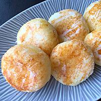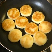 - 4 6等分にして中にピザ用チーズを包み、丸く成形し、全体に片栗粉をまぶします。