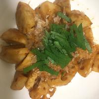 - 5 4を皿に盛り付け、かつお節と大葉を乗せたら完成です。