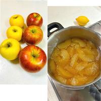 りんご5個、砂糖大さじ5、レモン汁大さじ1、水350ml。