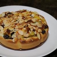 - 8 溶き卵を塗り、アーモンドスライスをのせて180℃のオーブンで15分程、焼き色が付くまで焼きます。粗熱が取れたら型から外して完成です。