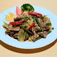 豚こま200gくらい、他はレシピ通りに作ったら、意外と味が薄めでした。