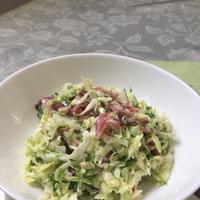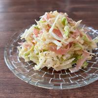 キャベツをたっぷり味わえてボリュームも満点!キャベツと生ハムのコールスローサラダです。甘味たっぷりシャキシャキキャベツと、生ハムの塩分が、マヨネーズのコクとよく合います。とっても簡単に仕上がりますので、今晩の一品にいかがでしょうか。