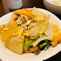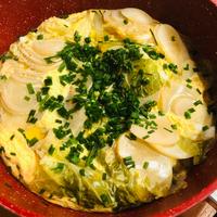白菜が沢山あったので、他の具材も少し増やして卵と調味料を倍量にして作りました。甘味のある出汁が一番底の油揚げによく染み込ていて食べるとほっこりしました。