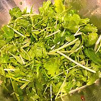 - 1 パクチーと水菜はよく洗って根を切り落とし、3cm幅に切ります。