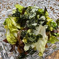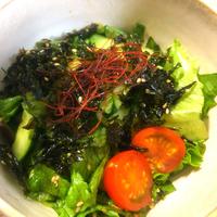 グリーンレタスとワカメと焼きのりで作りました。ドレッシングがめっちゃ美味しいです!