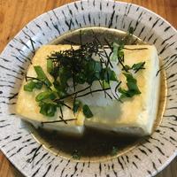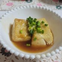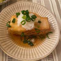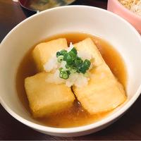 外はカリッと中はふわふわな食感がたまらない一品です。木綿豆腐と片栗粉を使い、フライパンで手軽に調理できます。優しい味わいの出汁には、大根おろしと生姜がアクセントになっています。お好みで出汁にとろみをつけてあんかけ風にアレンジするのもおすすめ。白だしとみりんのシンプルな味付けながら、お店のような上品な仕上がりで、家族みんなに好評な一品です。
