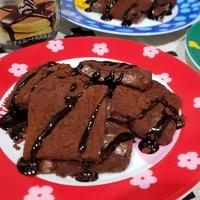 - 6 冷蔵庫から取り出し、食べやすい大きさに切って器に盛り、チョコレートソースをかけて完成です。