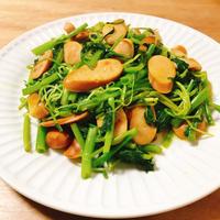 空心菜とソーセージのカレー炒めのご紹介です。油と相性がよい空心菜にソーセージの旨味とカレー風味がよく合います。ごはんのお供にはもちろん、お酒のおつまみにもおすすめなので、ぜひお試しくださいね。