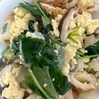 三つ葉がなくて彩りが悪いですが、ちくわでボリュームもあり美味しかったです。
