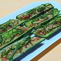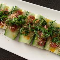 パリパリとした食感のきゅうりに、梅干しと大葉のさっぱりした風味、すりごまのコクが絶妙にマッチします。仕上げのラー油がピリッと効いて、さらに美味しさがアップ!大人はラー油のピリ辛アクセントを楽しみ、お子様はごま油で味わうなど、好みに合わせてアレンジ可能。取り除いた果肉も梅と和えれば無駄なく美味しく頂けます。ビールのおつまみにもぴったりな一品です。