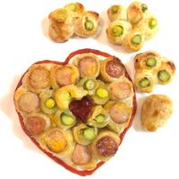 みんなで一口ずつつまめるフィンガーフード、ウインナーのパイ包みはいかがでしょうか。熱々のパイ生地にジューシーなウインナーがとてもよく合い、おいしいですよ。仕上げにチーズの入ったとろーりソースをたっぷりとつけてお召し上がりくださいね。