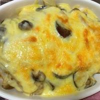 - 8 耐熱皿に、4、7、ピザ用チーズの順に入れ、トースターでチーズがこんがりするまで5分程焼きます。パセリをかけて完成です。